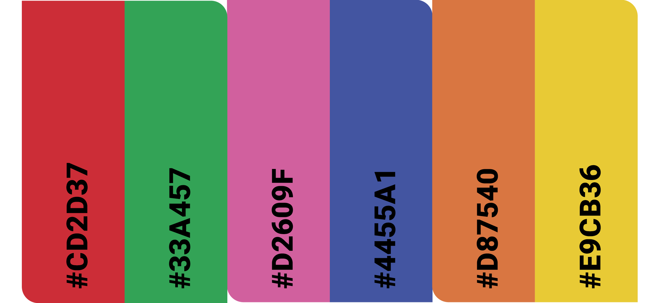 Les couleurs rouge, vert, bleu, rose, orange et jaune forment une palette dynamique et vibrante qui représente parfaitement la diversité et apportent une touche contemporaine.